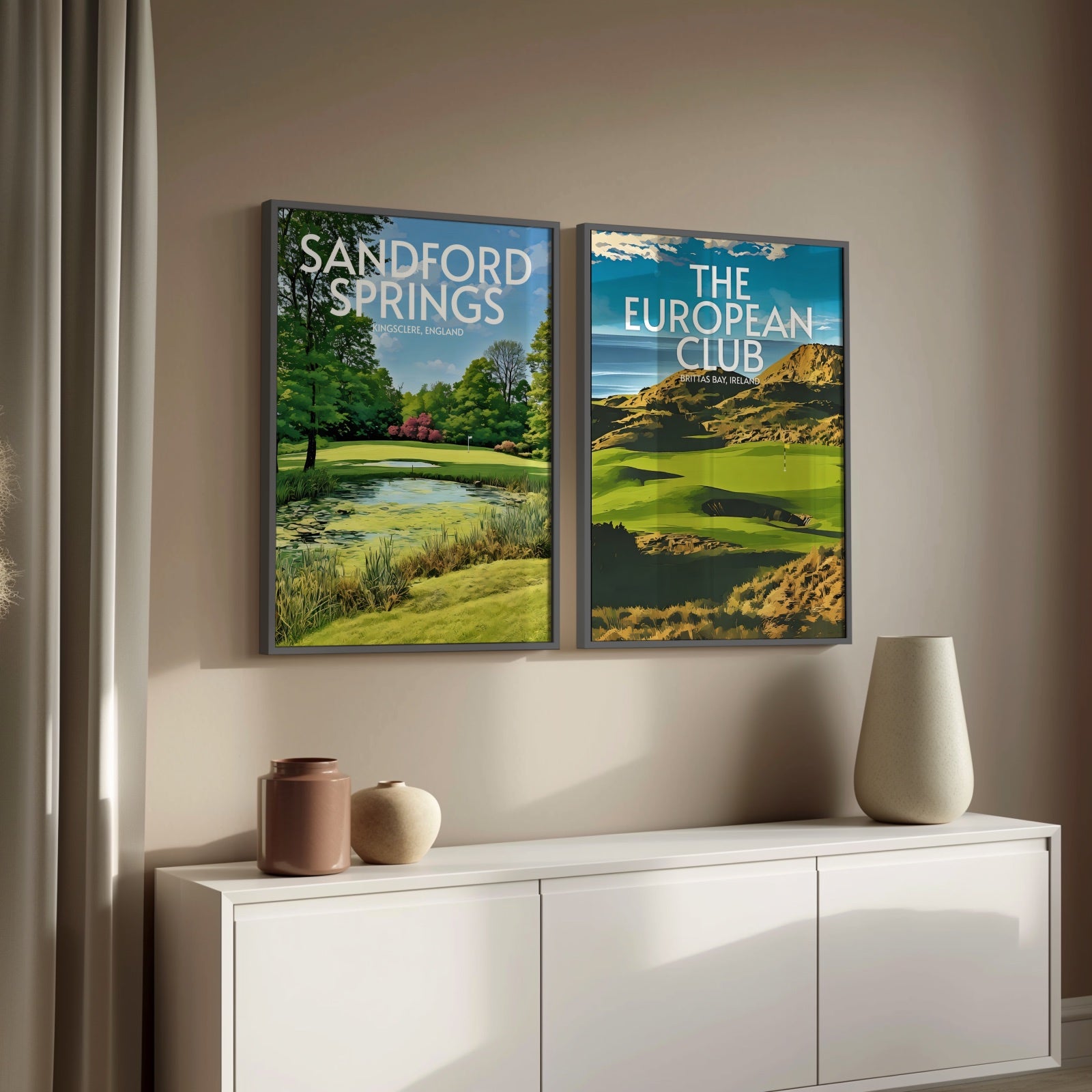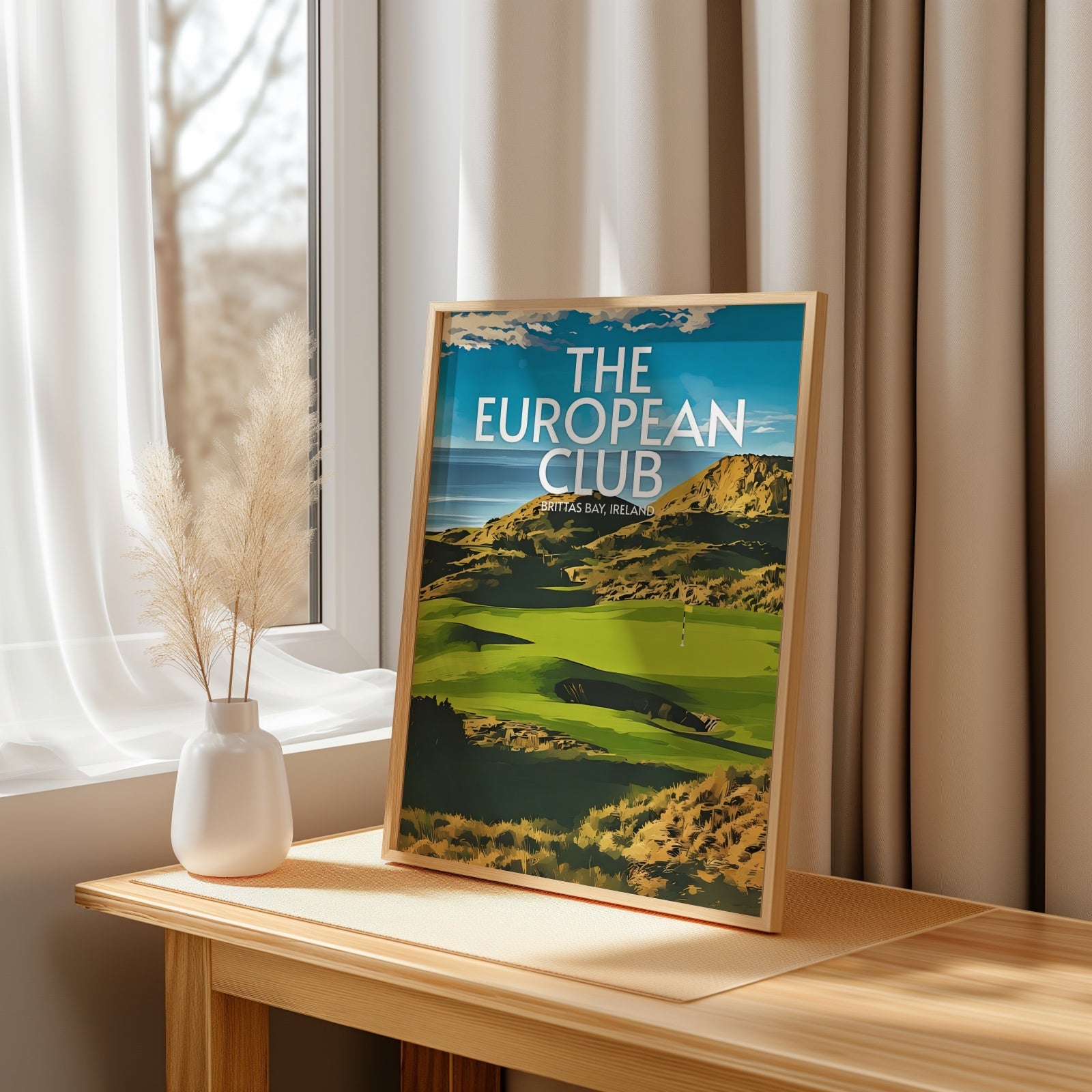Elevate your decor and showcase your love for golf with our premium European Club art print. The course is located in County Wicklow, Ireland, and this print makes the perfect souvenir or collector's item for anyone who has played there or admires great golf courses.