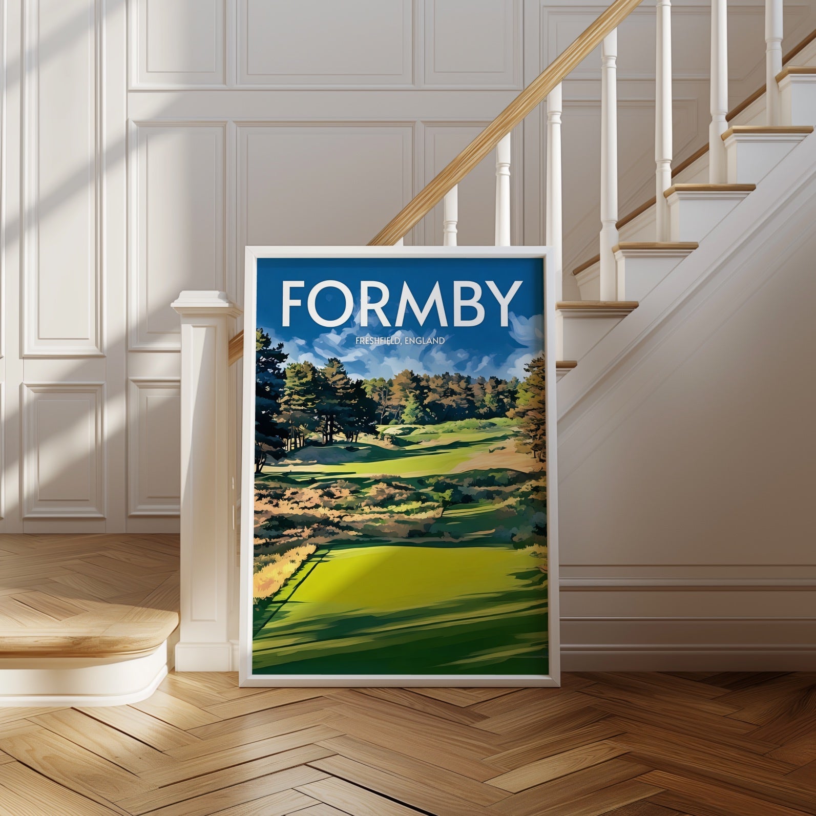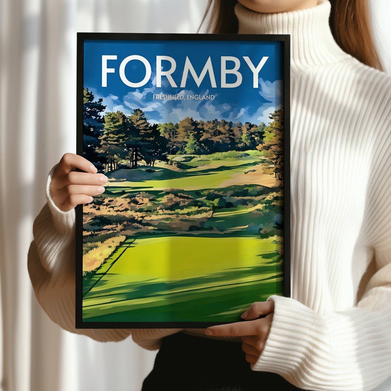 Elevate your decor and showcase your love for golf with our premium Formby art print. The course is located in Merseyside, England, and this print makes the perfect souvenir or collector's item for anyone who has played there or admires great golf courses.
