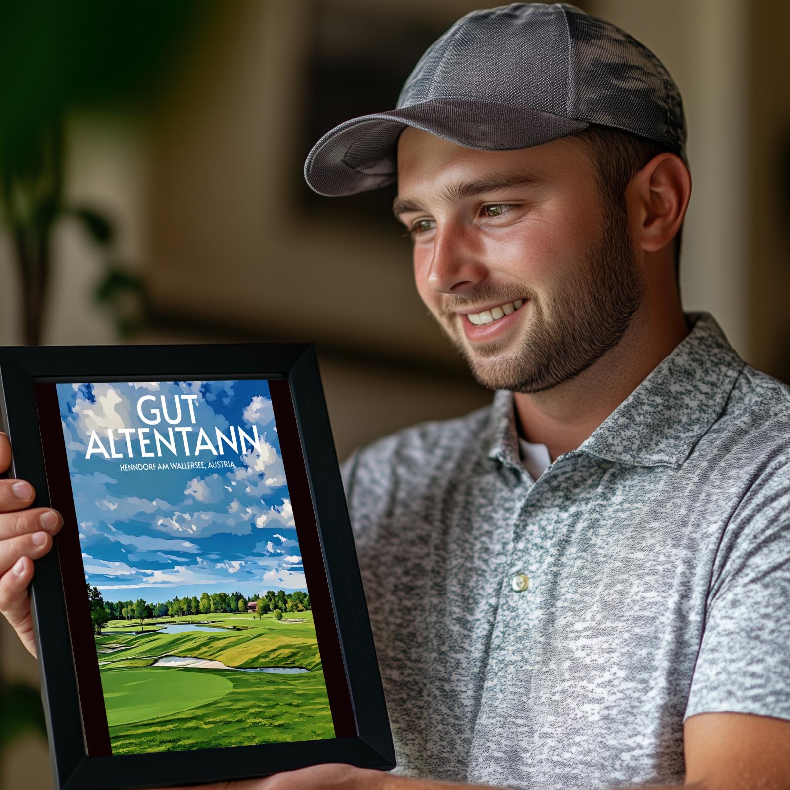 Elevate your décor and showcase your love for golf with our premium Gut Altentann Golf Course art print. The course is located in Henndorf am Wallersee, Austria, and this print makes the perfect souvenir or collectors item for anyone that has played there. Ideal for gifts, home or office decoration this piece is a must-have for any art lover or golf enthusiast.