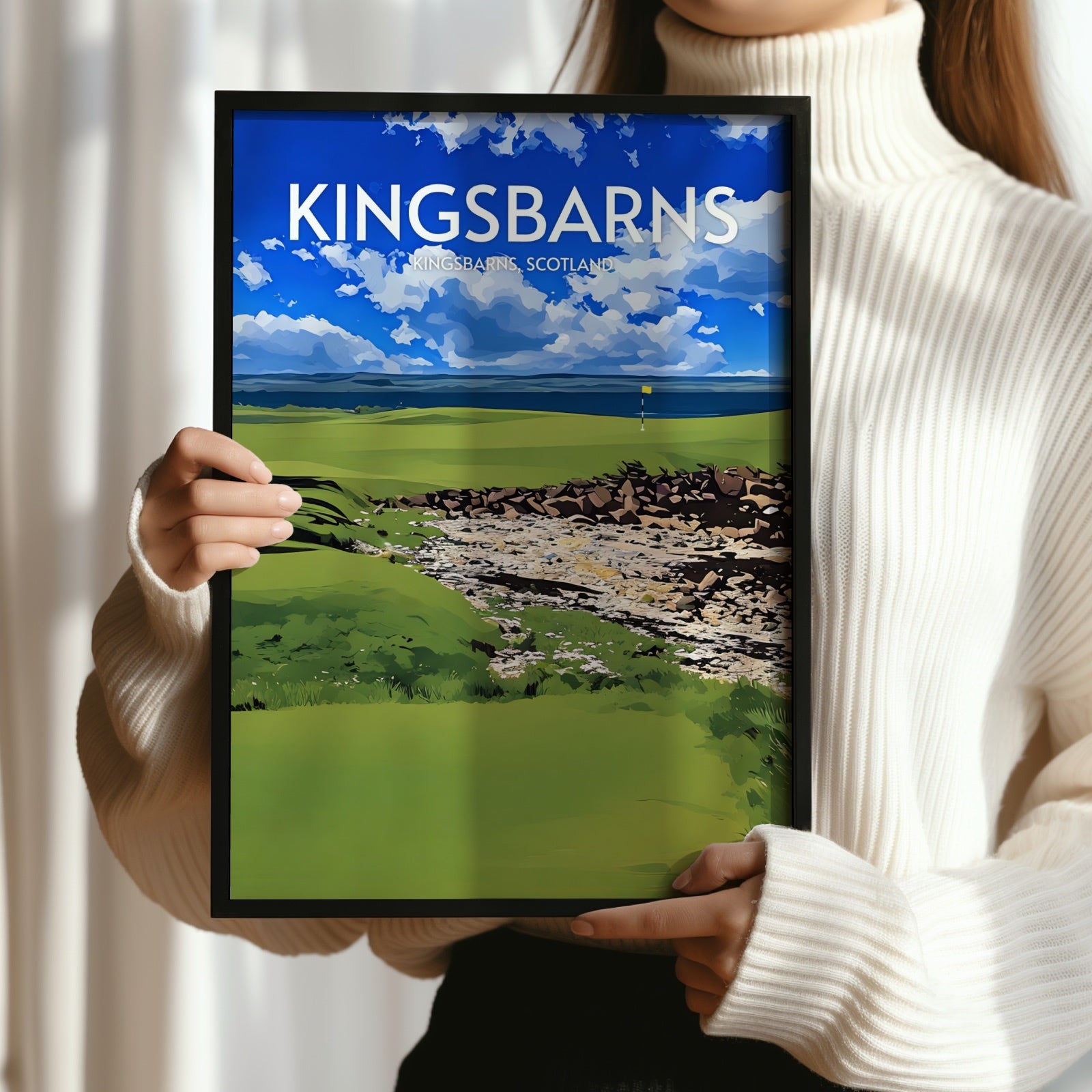 Elevate your decor and showcase your love for golf with our premium Kingsbarns art print. The course is located in Fife, Scotland, and this print makes the perfect souvenir or collector's item for anyone who has played there or admires great golf courses.