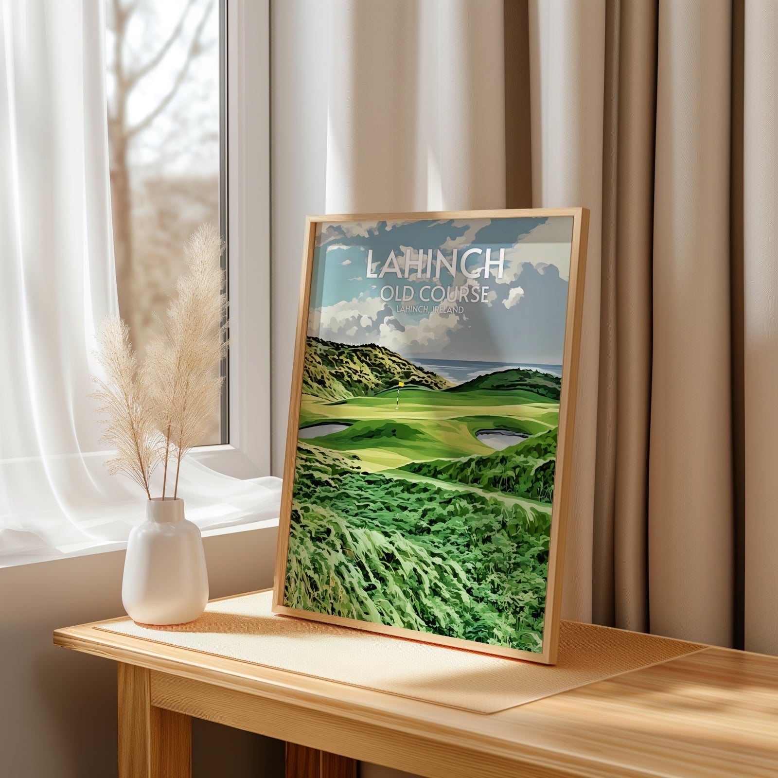 Elevate your decor and showcase your love for golf with our premium Lahinch art print. The course is located in County Clare, Ireland, and this print makes the perfect souvenir or collector's item for anyone who has played there or admires great golf courses.