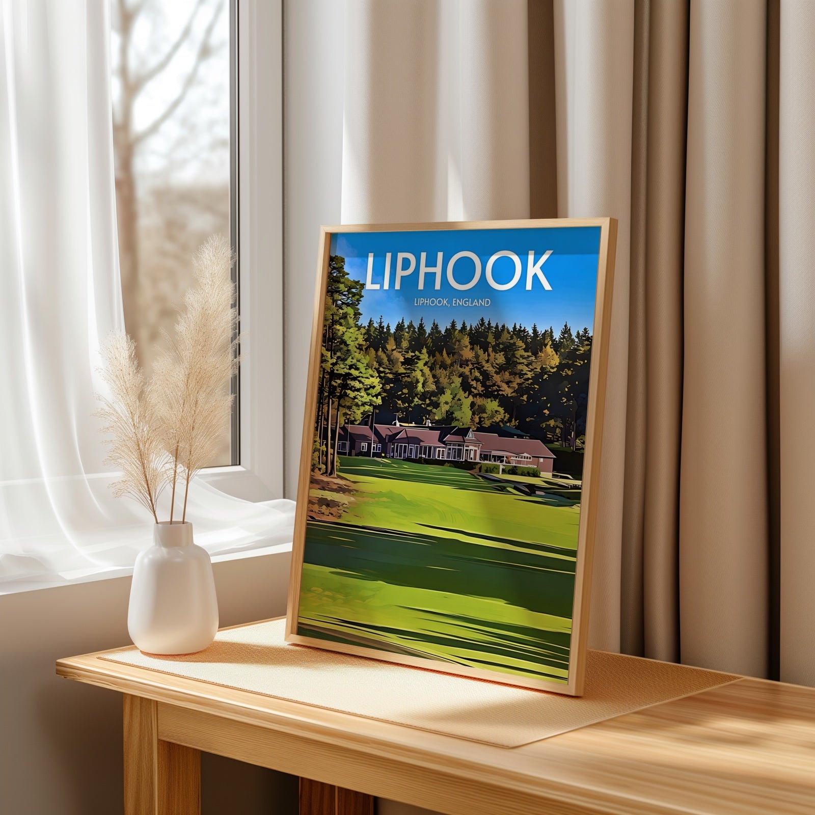 Elevate your decor and showcase your love for golf with our premium Liphook art print. The course is located in Hampshire, England, and this print makes the perfect souvenir or collector's item for anyone who has played there or admires great golf courses.