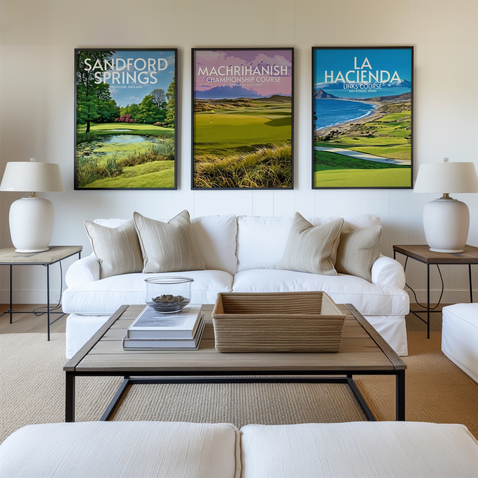 Our golf wall art prints are ideal for gifts, office decor ideas, Father's Day presents and Christmas gifts. They work perfectly for man cave decor, holiday memories or as part of a collection of golf prints from courses you have visited.