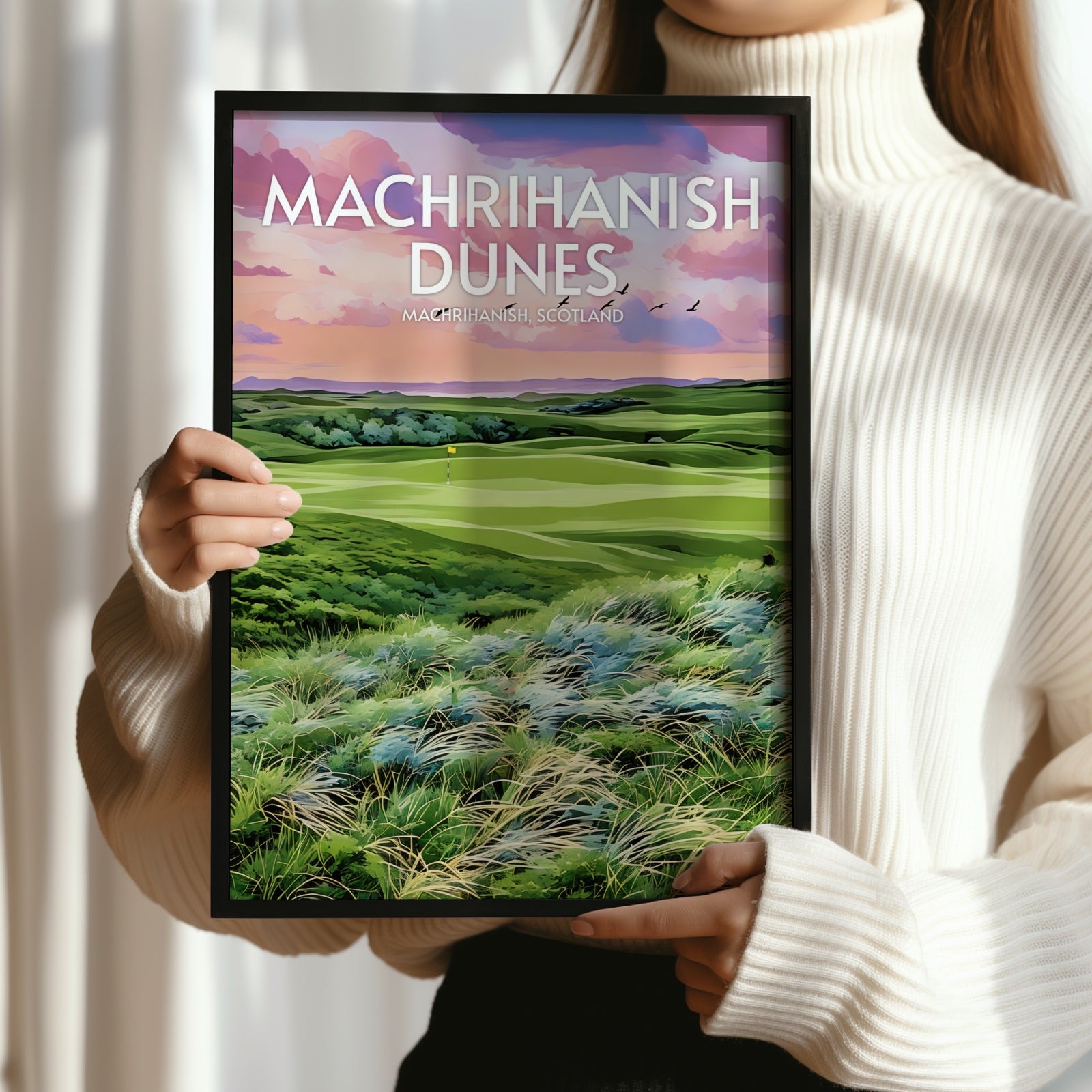 Elevate your decor and showcase your love for golf with our premium Machrihanish Dunes art print. The course is located in Argyll and Bute, Scotland, and this print makes the perfect souvenir or collector's item for anyone who has played there or admires great golf courses.