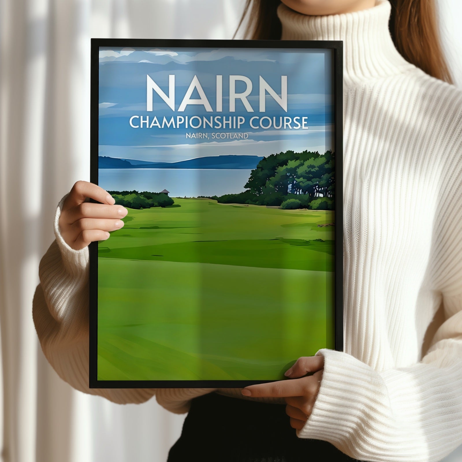 Elevate your decor and showcase your love for golf with our premium Nairn Championship Course art print. The course is located in Highland, Scotland, and this print makes the perfect souvenir or collector's item for anyone who has played there or admires great golf courses.