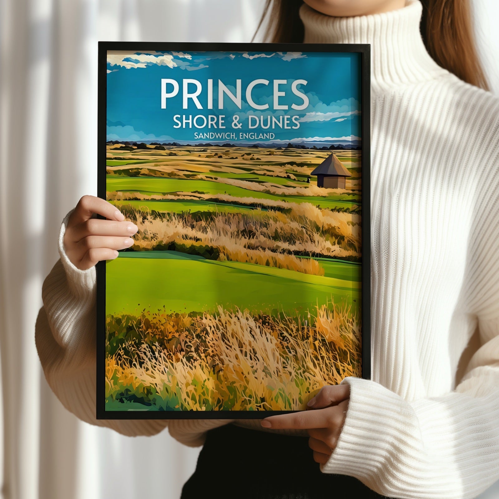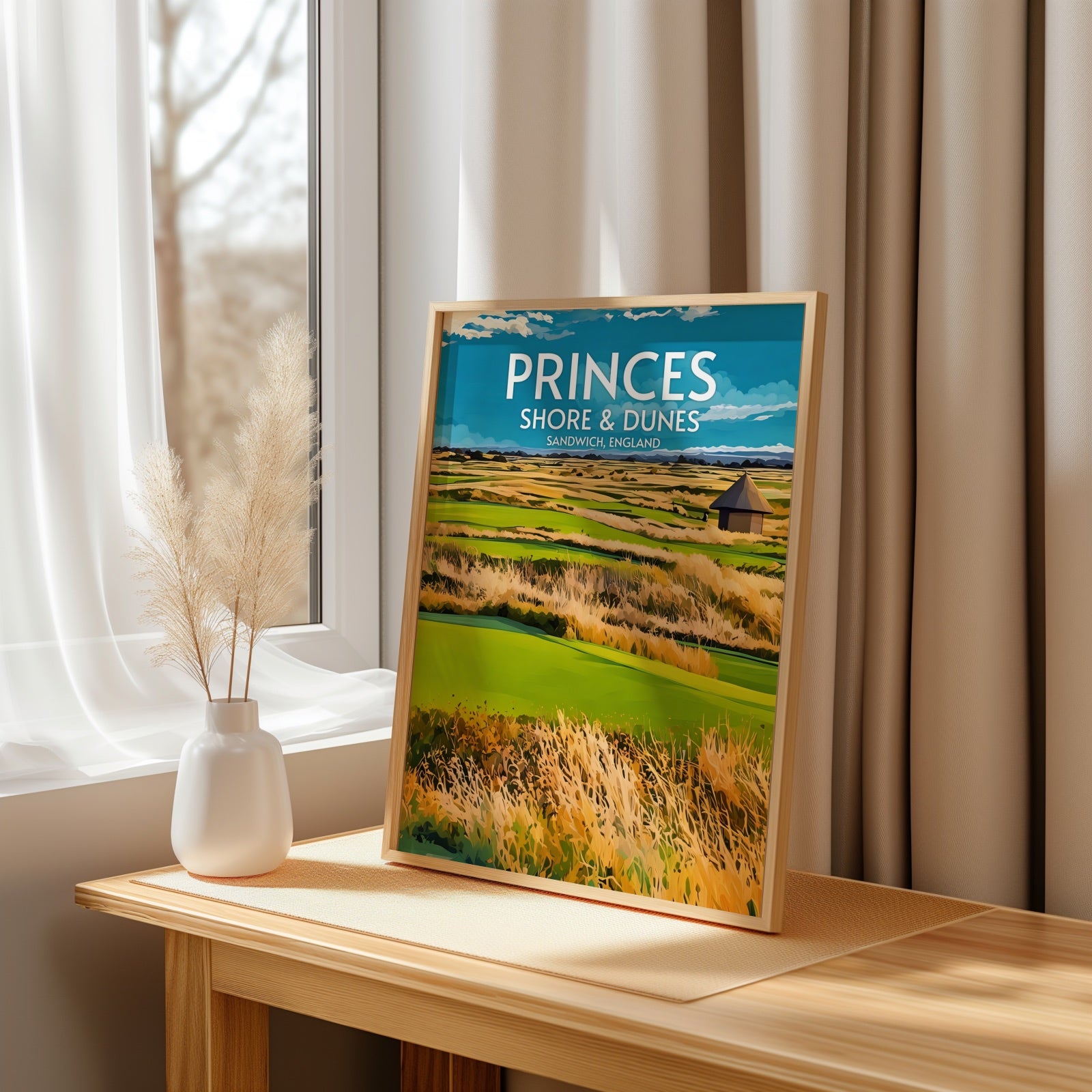 Elevate your decor and showcase your love for golf with our premium Princes Shore and Dunes art print. The course is located in Kent, England, and this print makes the perfect souvenir or collector's item for anyone who has played there or admires great golf courses.
