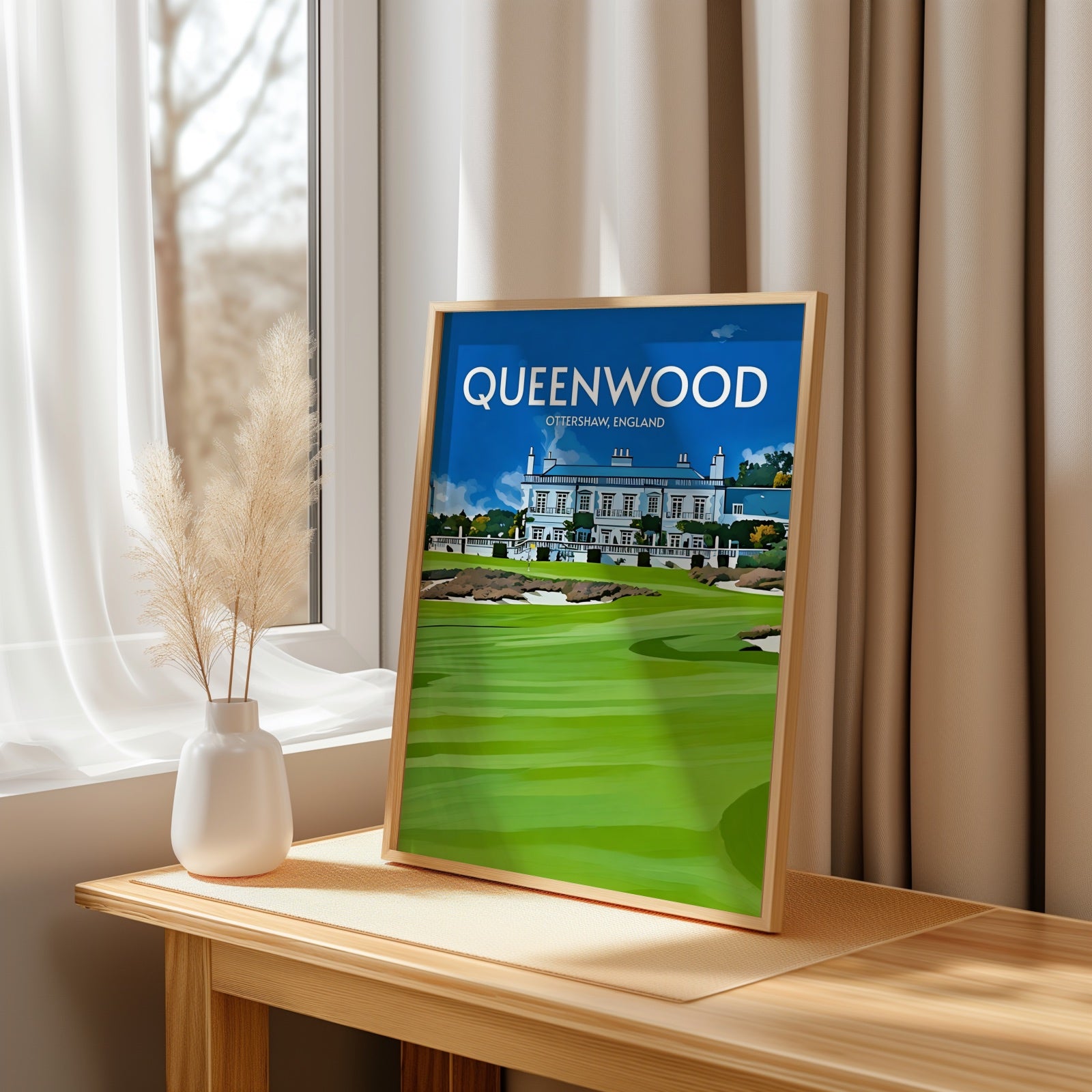 Elevate your decor and showcase your love for golf with our premium Queenwood art print. The course is located in Surrey, England, and this print makes the perfect souvenir or collector's item for anyone who has played there or admires great golf courses.