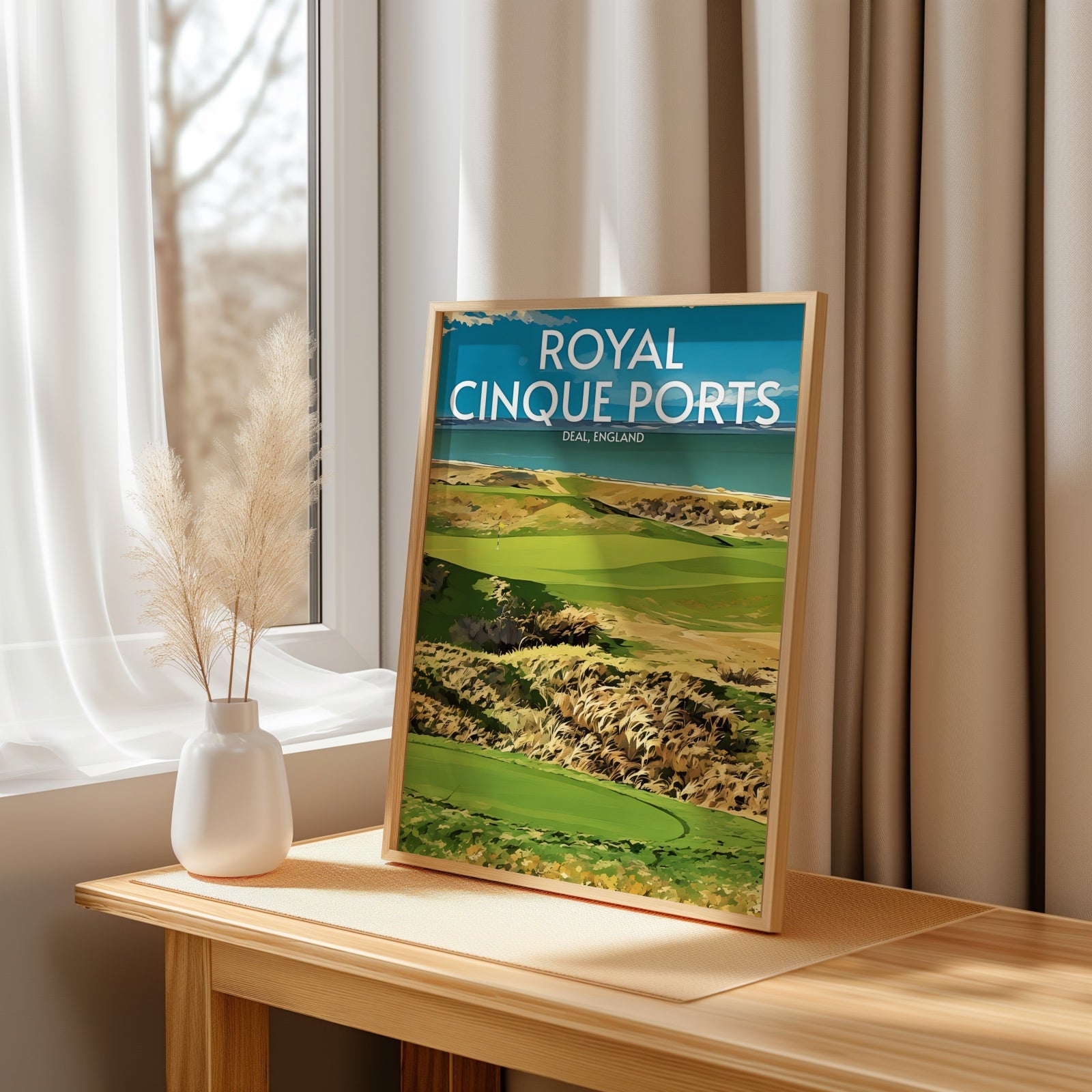 Elevate your decor and showcase your love for golf with our premium Royal Cinque Ports art print. The course is located in Kent, England, and this print makes the perfect souvenir or collector's item for anyone who has played there or admires great golf courses.