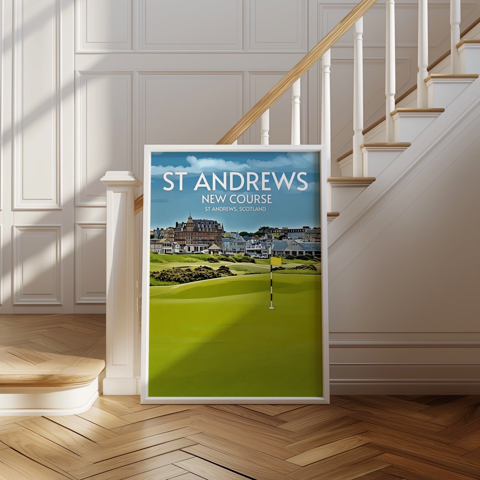 Elevate your decor and showcase your love for golf with our premium St Andrews New Course art print. The course is located in Fife, Scotland, and this print makes the perfect souvenir or collector's item for anyone who has played there or admires great golf courses.