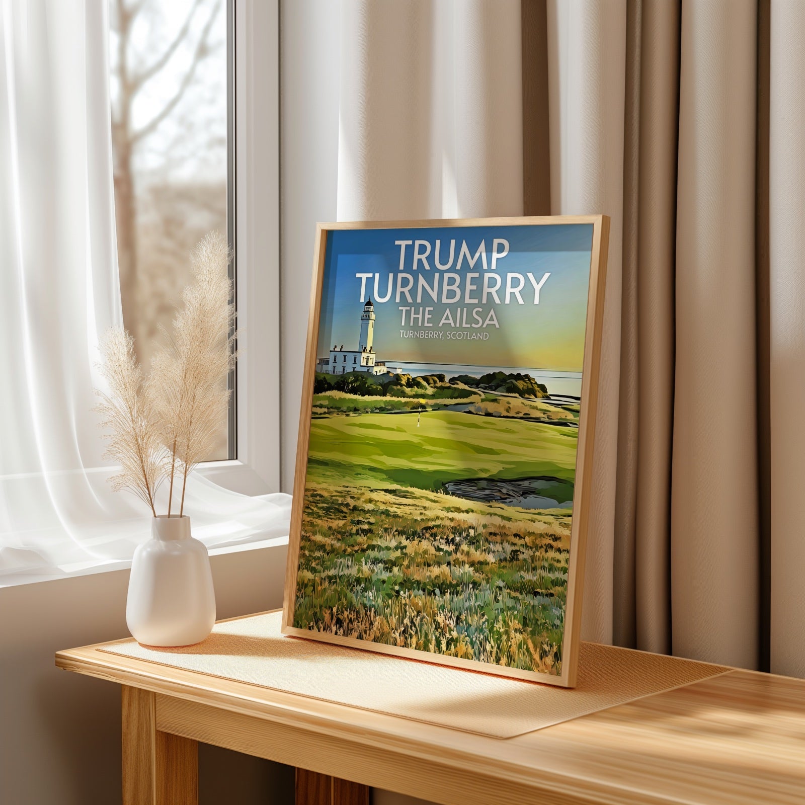 Elevate your decor and showcase your love for golf with our premium Trump Turnberry Ailsa Course art print. This print makes the perfect souvenir or collector's item for anyone who has played there or admires great golf courses.